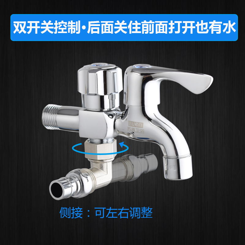 Two-headed water faucet 4 double-ended double-use washing machine mop pool faucet one in two out copper single cold three-way one point two 6