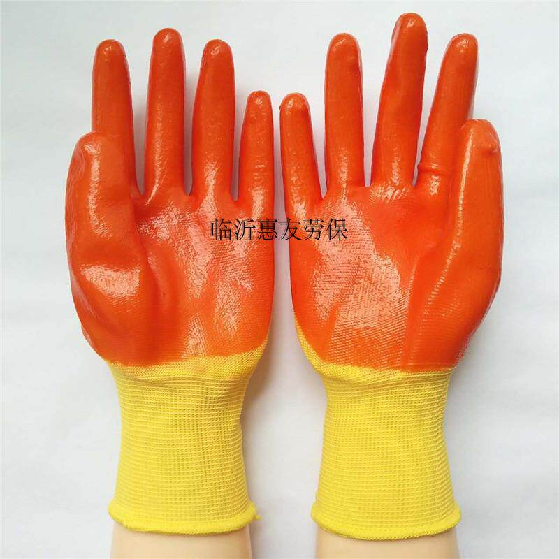 Old Real People PVC Half-hanging Lauder Wear Gloves Soaked rubber nylon hanging glue anti-oil and acid and alkali resistant gloves-Taobao