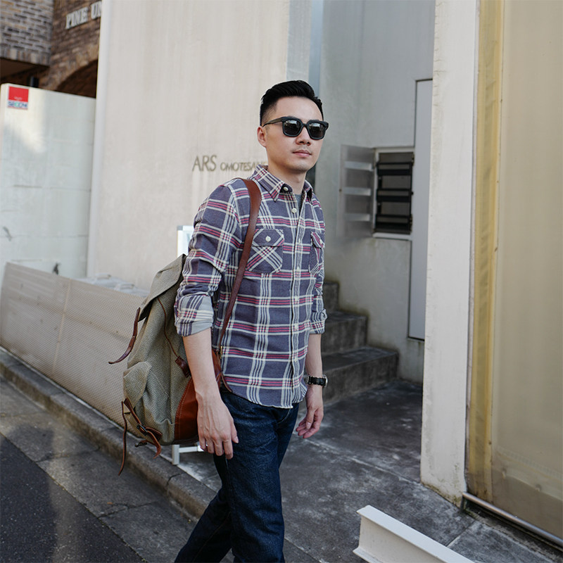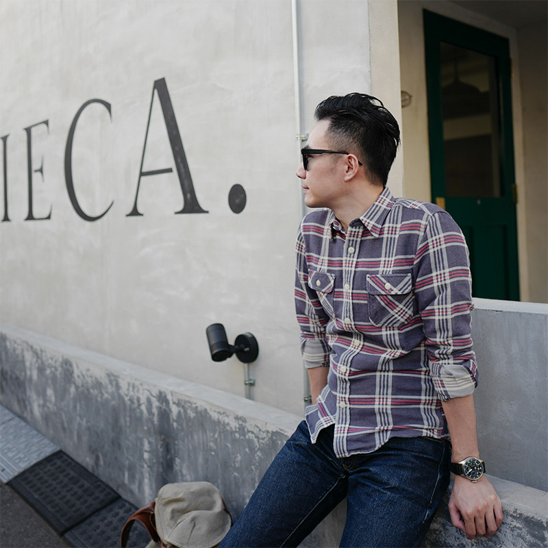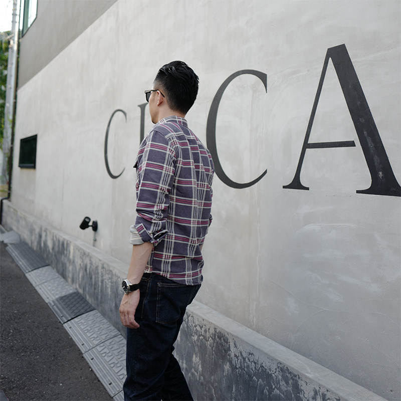 Autumn and winter thickened long-sleeved shirt men's blue plaid retro casual slim cotton trend denim shirt everyday