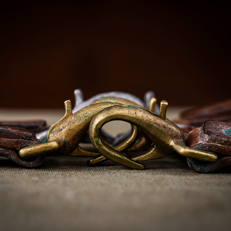 WWII Sweden brass tannic leather key buckle handmade cow leather rivet with buckle retro vintage military collection