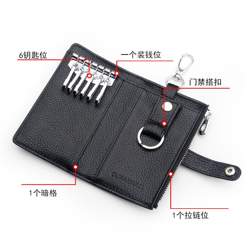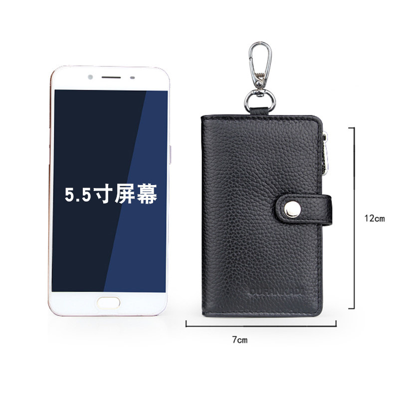 Large Capacity Key Bag Men Genuine Leather Zero Wallet Female Style Lock Spoon Cow Leather Car Key Buckle Waist Hanging Lock Spoon Bag