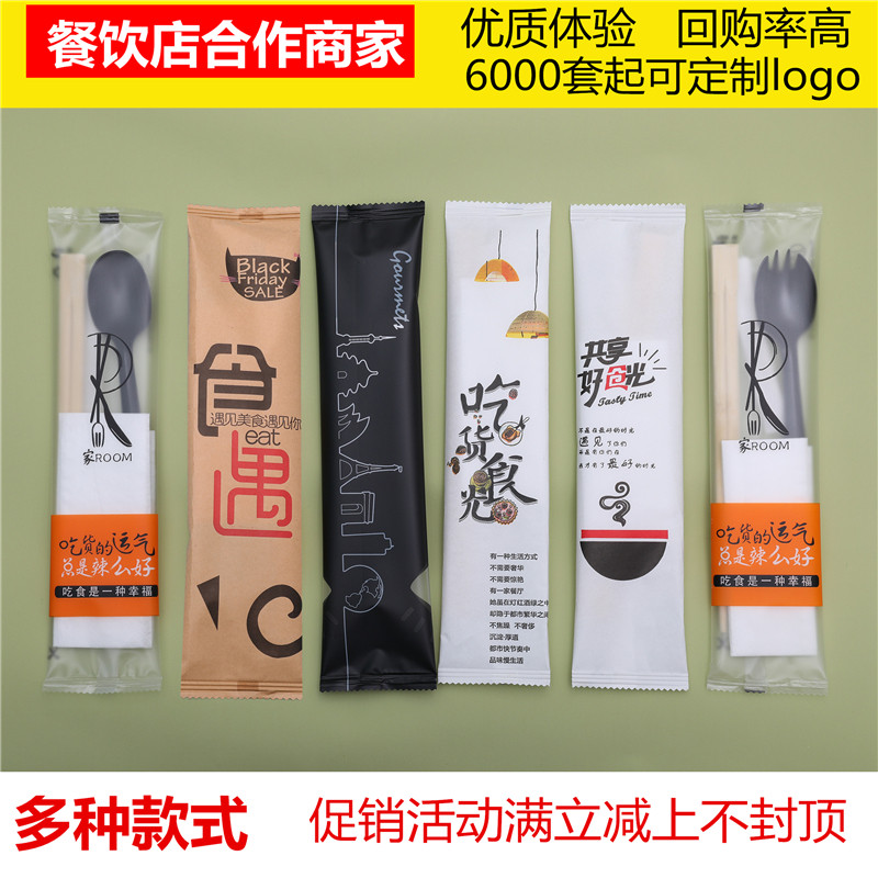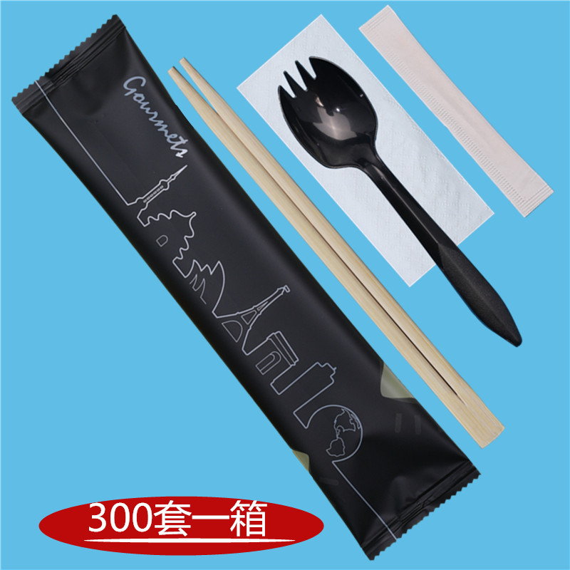 Disposable chopsticks four-piece set forks and spoons Commercial dining utensils Four-in-one dining room Hotel delivery packing spoon set customization