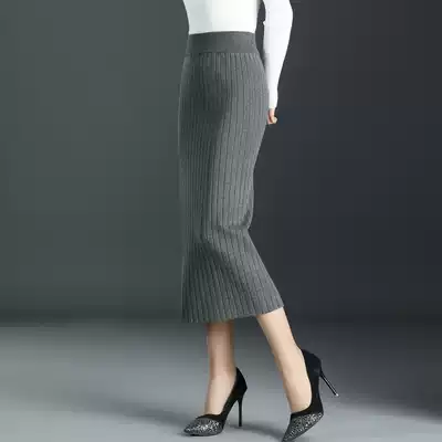 Knitted skirt skirt autumn and winter women 2021 new medium and long version of wool one step skirt split thin hip skirt