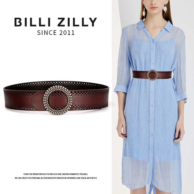 Cow Leather Belt Lady Decorative accessories sweater 100 lap fashion big coat wide strap genuine leather waist seal black tide
