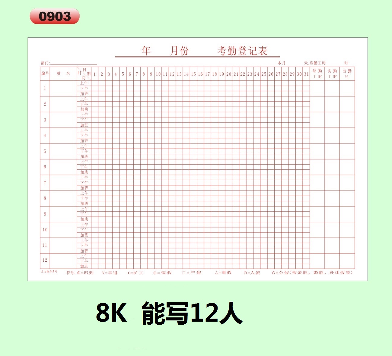 Main force 16K 8K attendance registration form attendance list Employee attendance Form A3 A4 8 open attendance registration form
