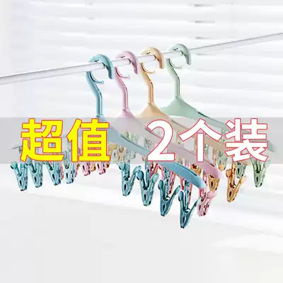 (2 installed) Creative 8 clip windproof buckle multifunctional hanger plastic clothes drying rack socks inner hanger
