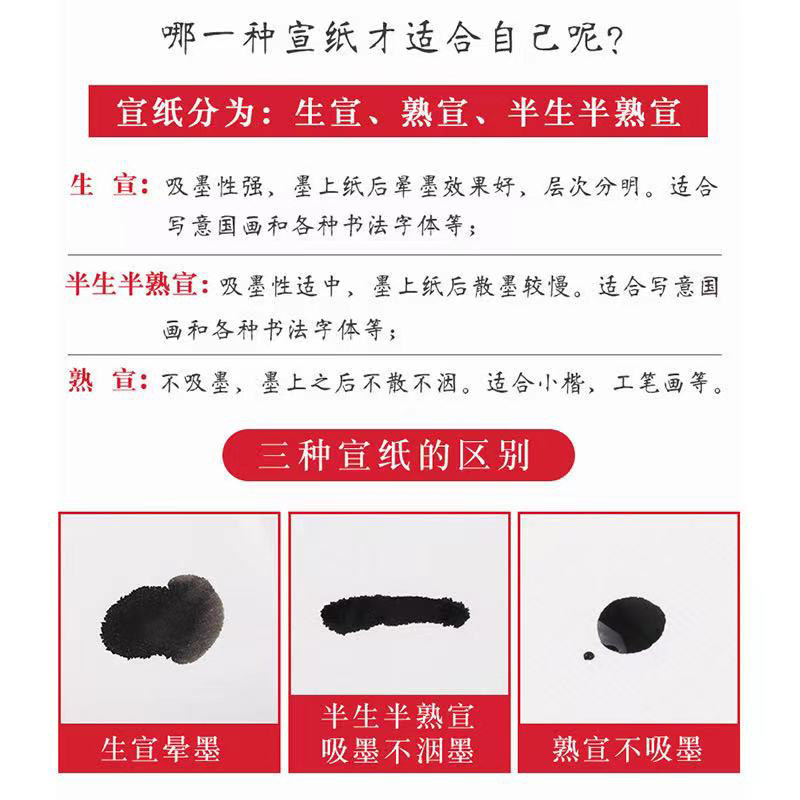 Calligraphy Semi-raw Cooked Rice Paper Country Painting Raw Calligraphy Paper Work Stroke Cooked Rice Paper Beginology Gross Pen Character Watercolor Special Work Paper