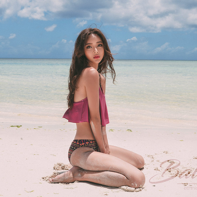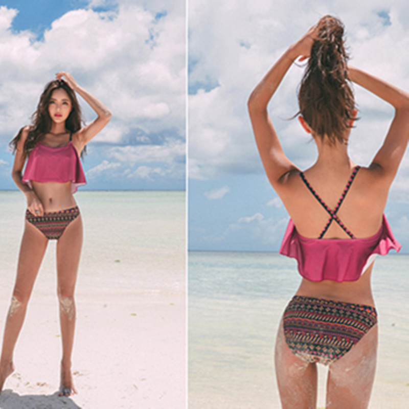The new purple bikini swimsuit women's slim fit triangle two-piece swimsuit steel to gather large breasts for a small breasted beach holiday