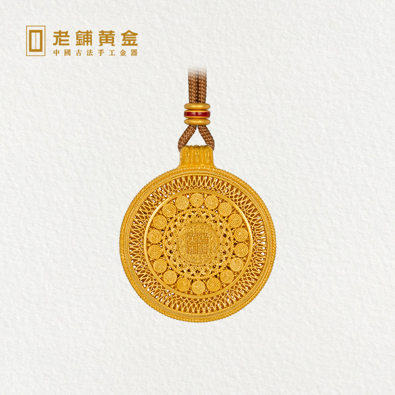 Old Paving Gold Ancient Method Handmade Silk Studded with Ruyi Satisfactory Foot Gold Pendant Gold Necklace universal for men and women