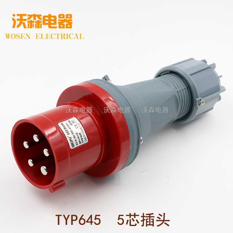 Wipu waterproof industrial plug TYP645 male and female mobile connector 63A5 core open socket concealed straight seat