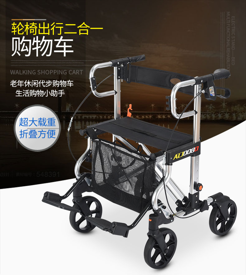 Ellijiao Elderly Trolley Aged Bassist Folding Light Type Wheelchair for grocery shopping cart Maid cart Folding Fold