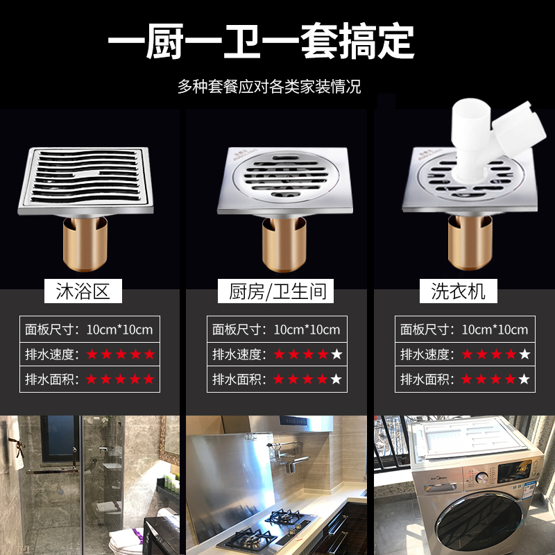 Floor-leak all-copper-odorkeystem sewerage core cover bathroom showroom washing machine dual-use stainless steel square