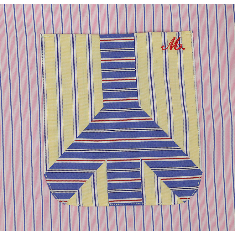 Special 499-Long sleeves striped shirt chest pocket LOGO logo cotton Romanian origin