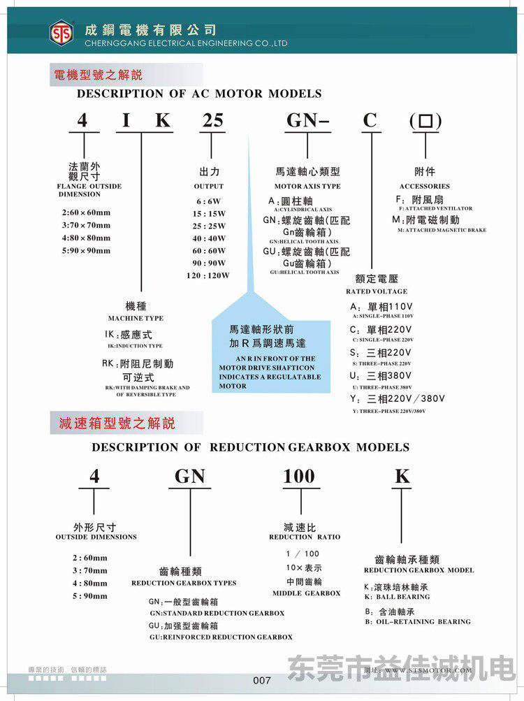 STS Taiwan Chenggang Steel 90w Fixed Speed Reduction Three-phase Motor Gear Reduction Motor 5IK90GU-YF