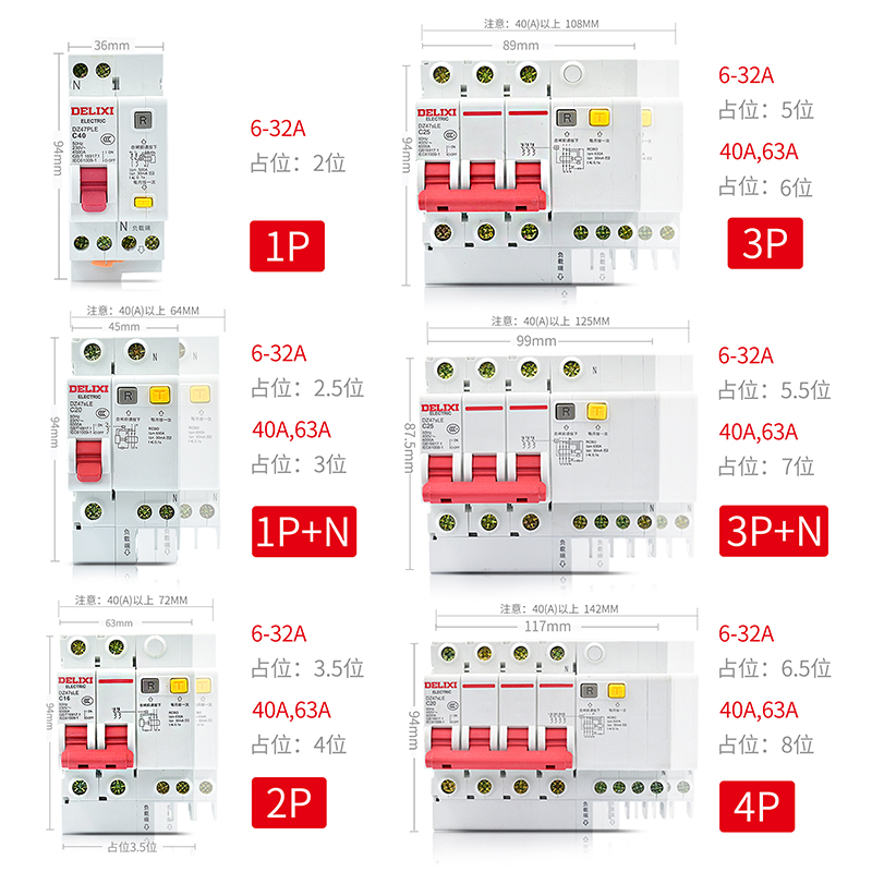 DZ47SLE Deforce West three-phase three-wire 3P with earth leakage protector small breaker air switch 32A-63A