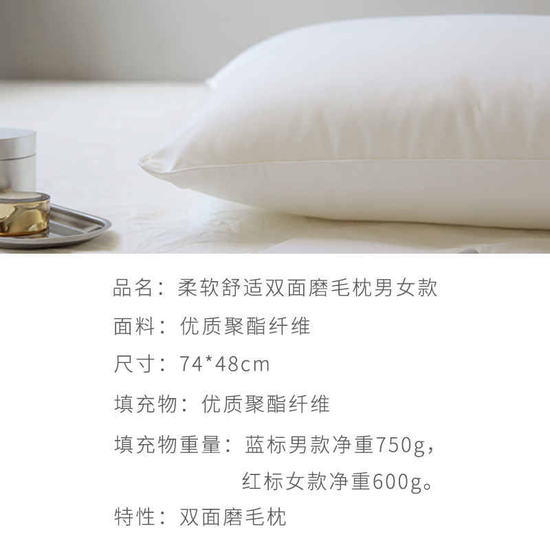 Blue Label men's red label Women's double face grinding pillow core lovers' comfortable and soft adult pillow single only
