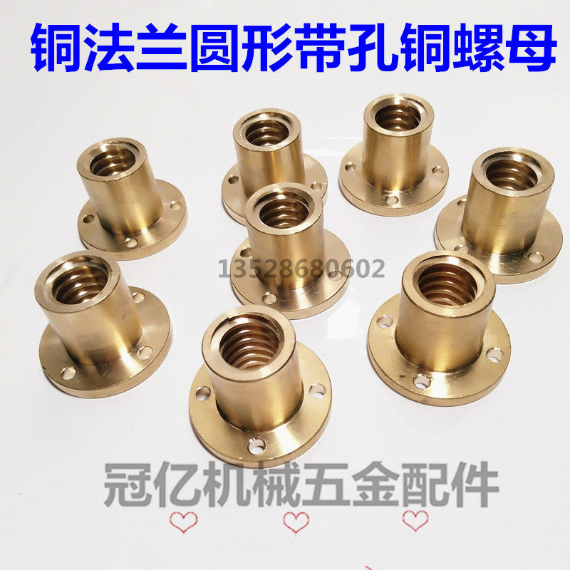 T-type wire rod trapezoidal wire rod round flange copper nut T20 * 4 pitch 4 with hole copper nut