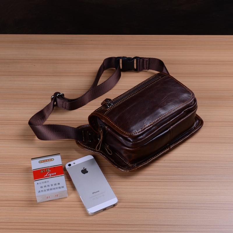 Men's Leather Waist Bag Mobile Phone Bag Leather Small Bag Trendy Men's Backpack Men's and Women's Business Collection Wallet