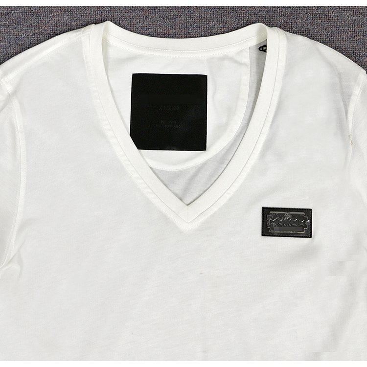 Special 750-P men white short sleeve T-shirt chest large logo steel plate cotton