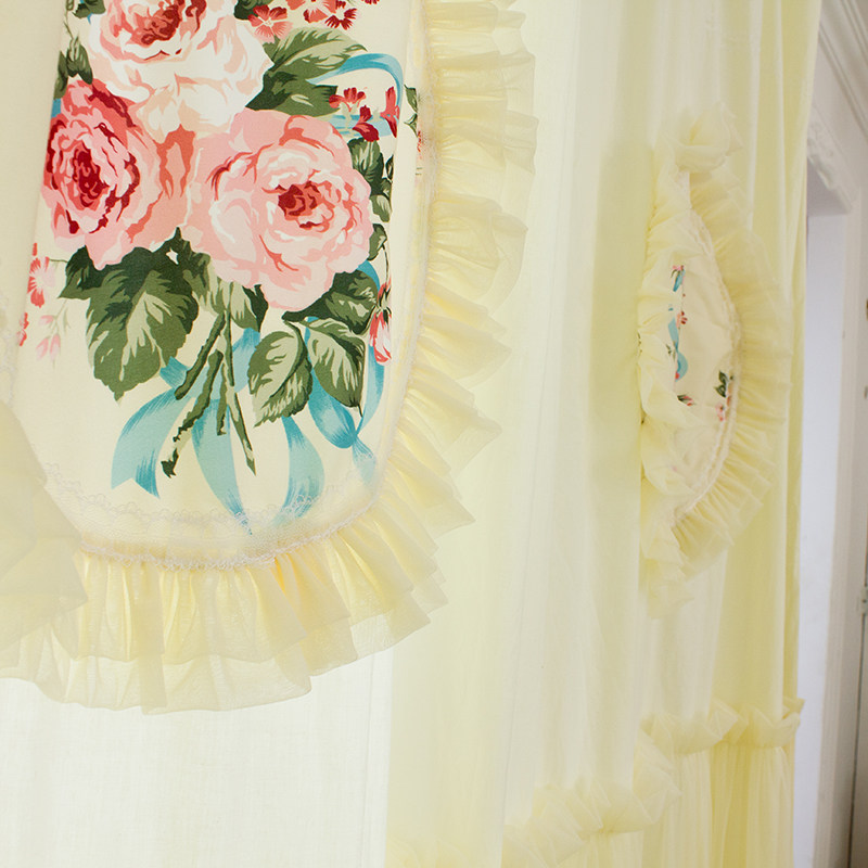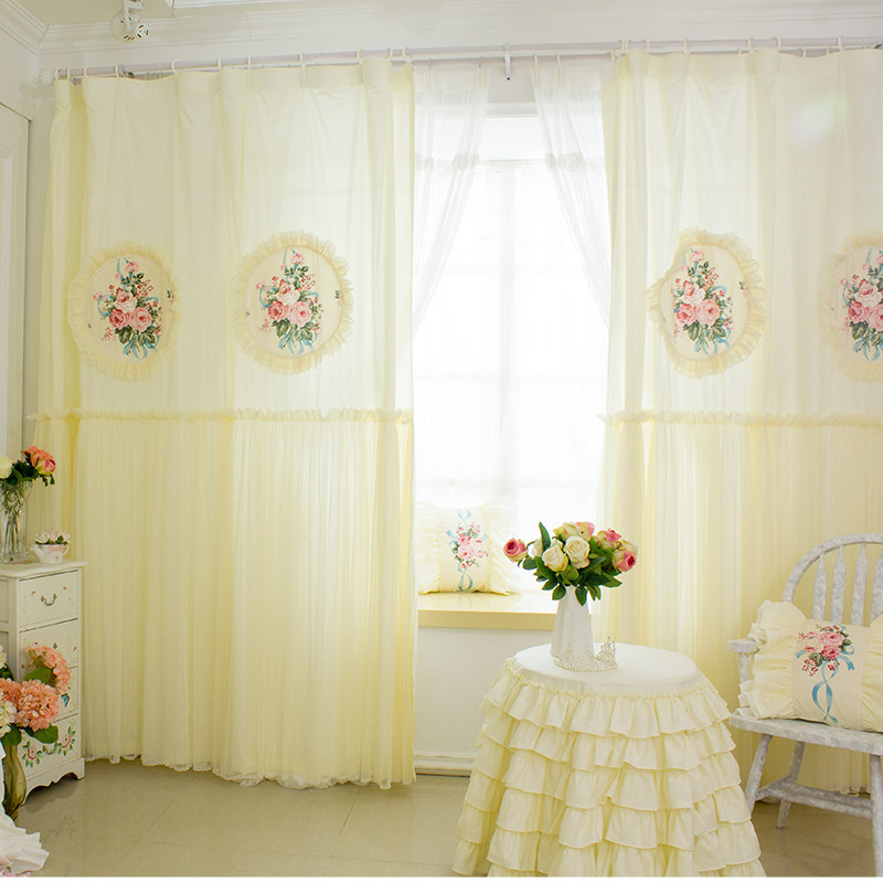 South Korea Extravagant Beige Curtain Shading Ground Window Bedroom Living Room Yarn Curtain Upscale Atmospheric Finished-to-European style