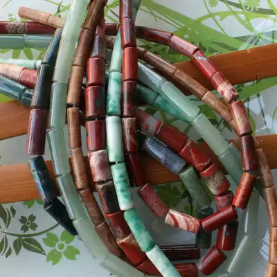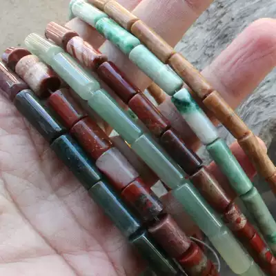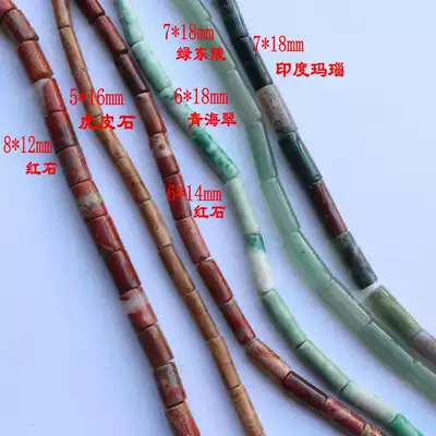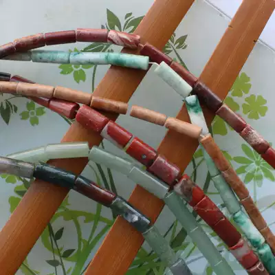 Natural Green Dongling Agate-Qinghai Cui-Redstone round tube beads Cylindrical beads scattered beads DIY jewelry accessories