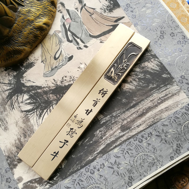 Wenfang Four Treasure brass Town ruler Town paper Lu Xun prostrate for the children Cow Calligraphy Press Ruler A Pair of Quality brass
