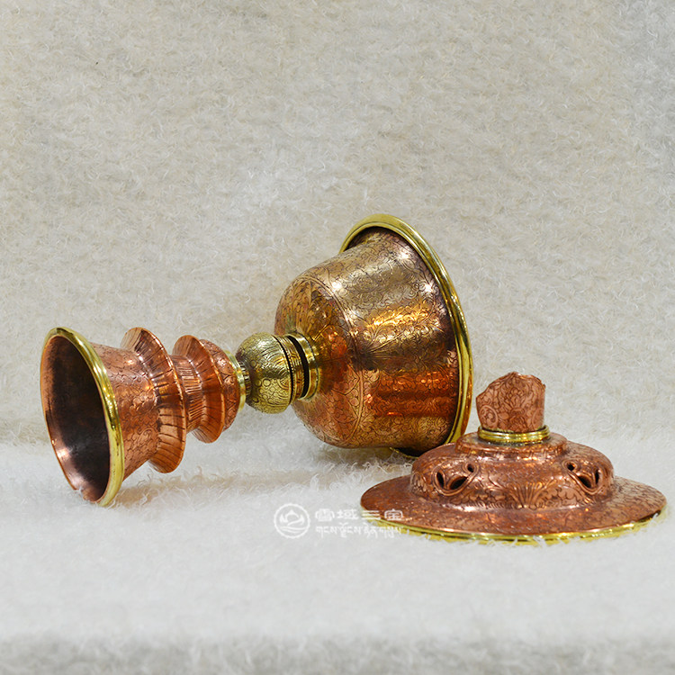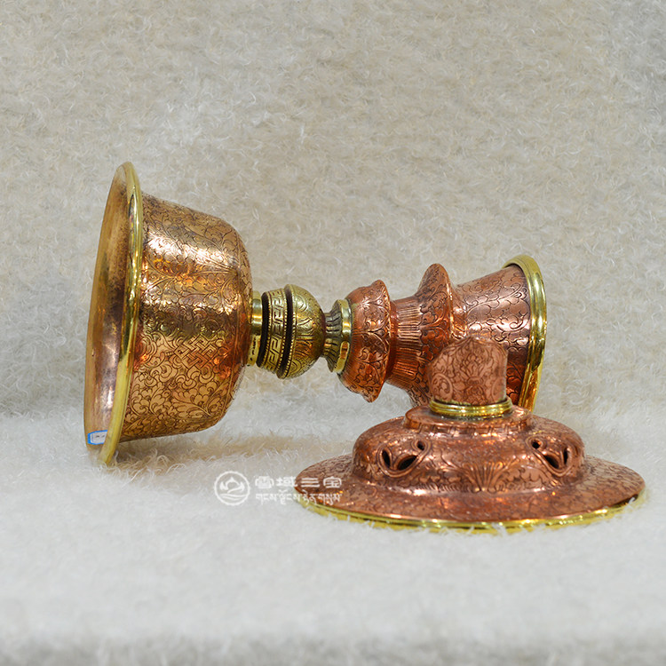 Nepal imports red copper ghee oil lamp by hand engraving 8 auspicious for lanterns for Buddha Changming lamp utiliti lamp with lid