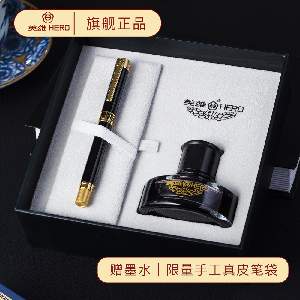 Hero Pen 1316A Official 12K Gold Pen Private Custom Suit Writing Practice Writing High Grade Metal Sharp Tip Ink Pen Business Gift Gift Lettering Gift Box Set Teacher Office