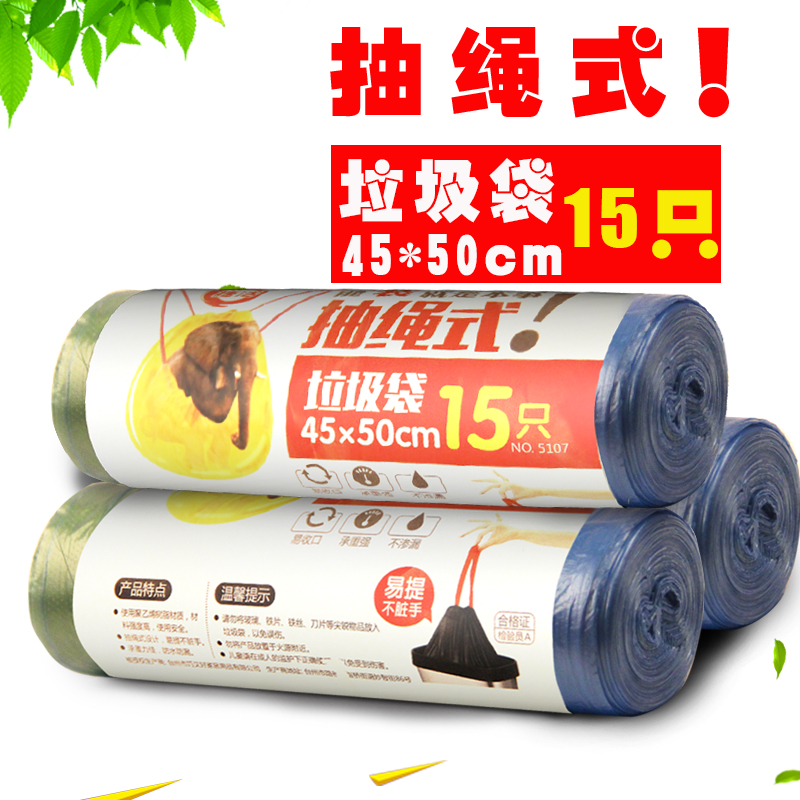 Automatic closing garbage bag Household portable thickened drawstring rope-through rope size kitchen food waste storage affordable package