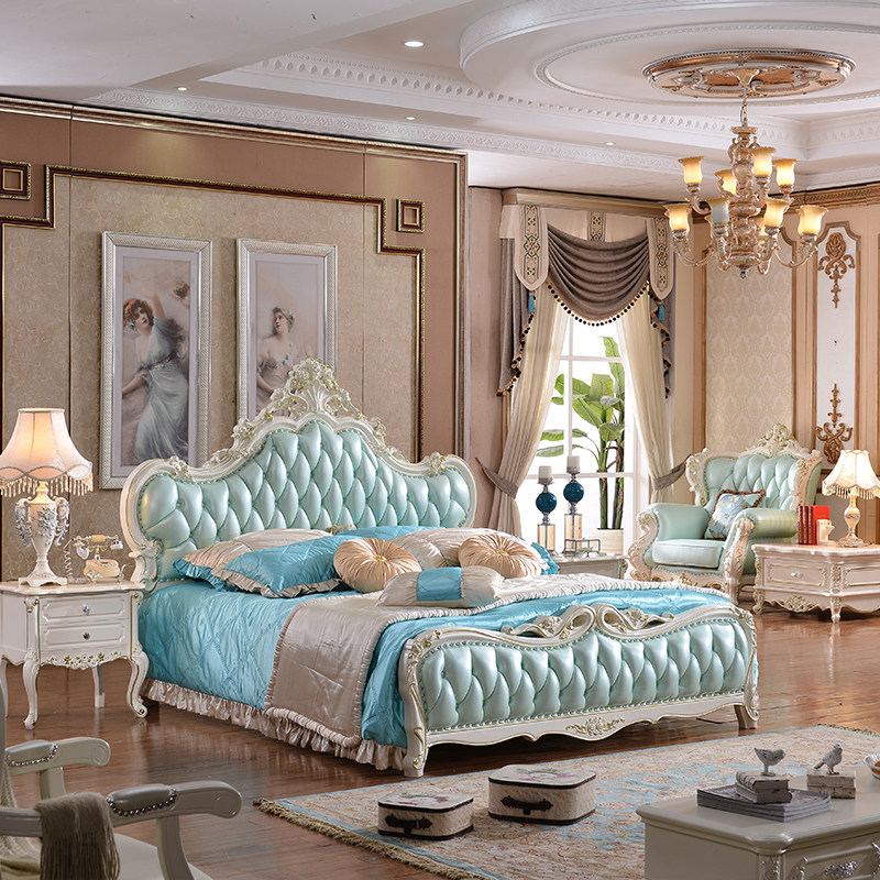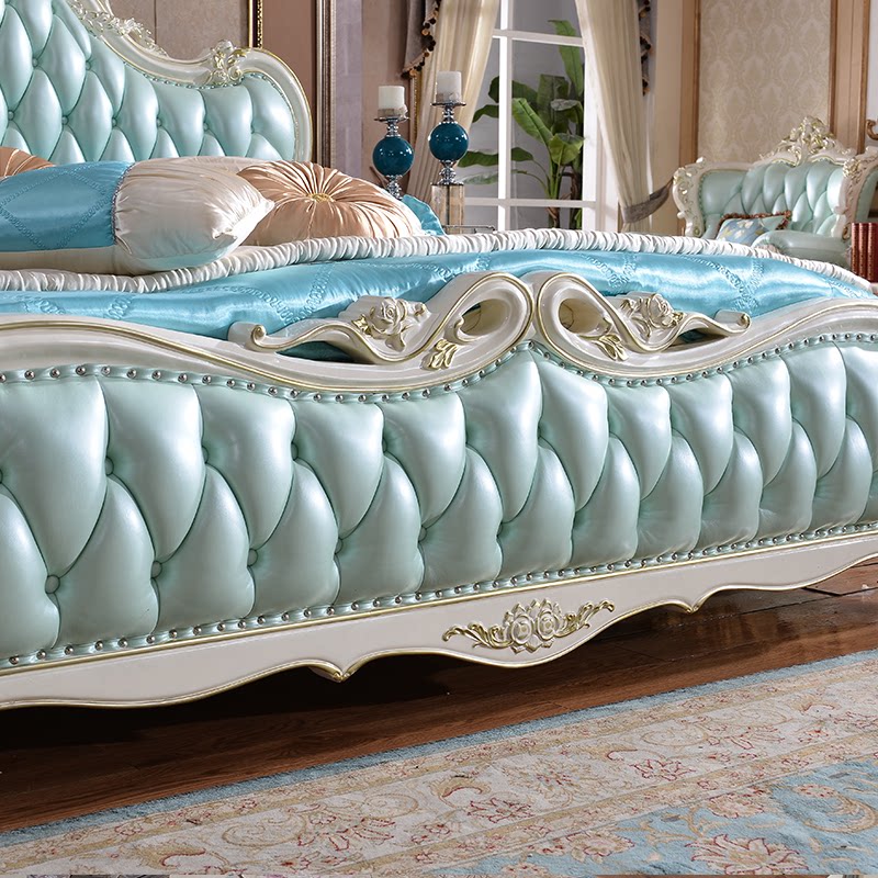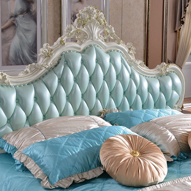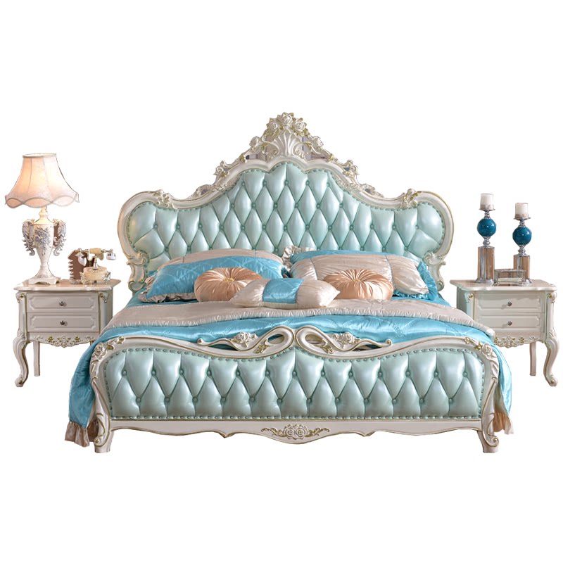 European-style leather full solid wood bed French double bed bedroom luxury wedding bed white carved princess high box bed