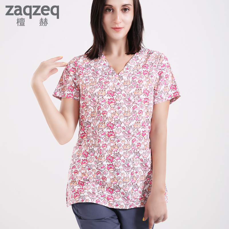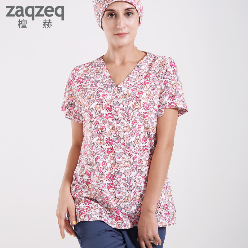 European and American fashion printed short sleeve surgery suit for body wash suit woman cute pet hospital nurse work clothes