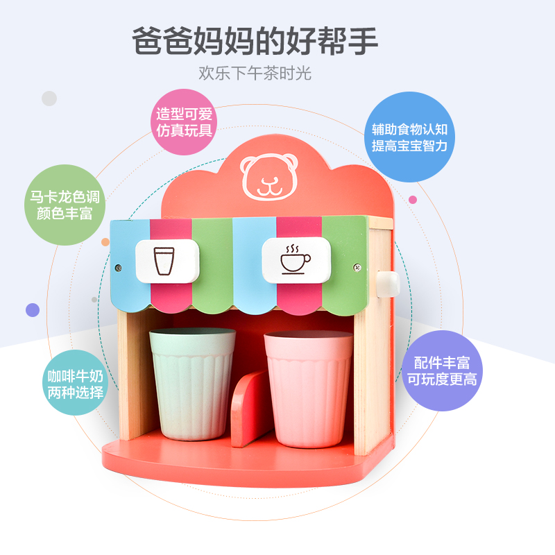 ToyWoo Wooden house wine Breakfast coffee machine Afternoon tea Kitchen toys Role-playing children's educational toys