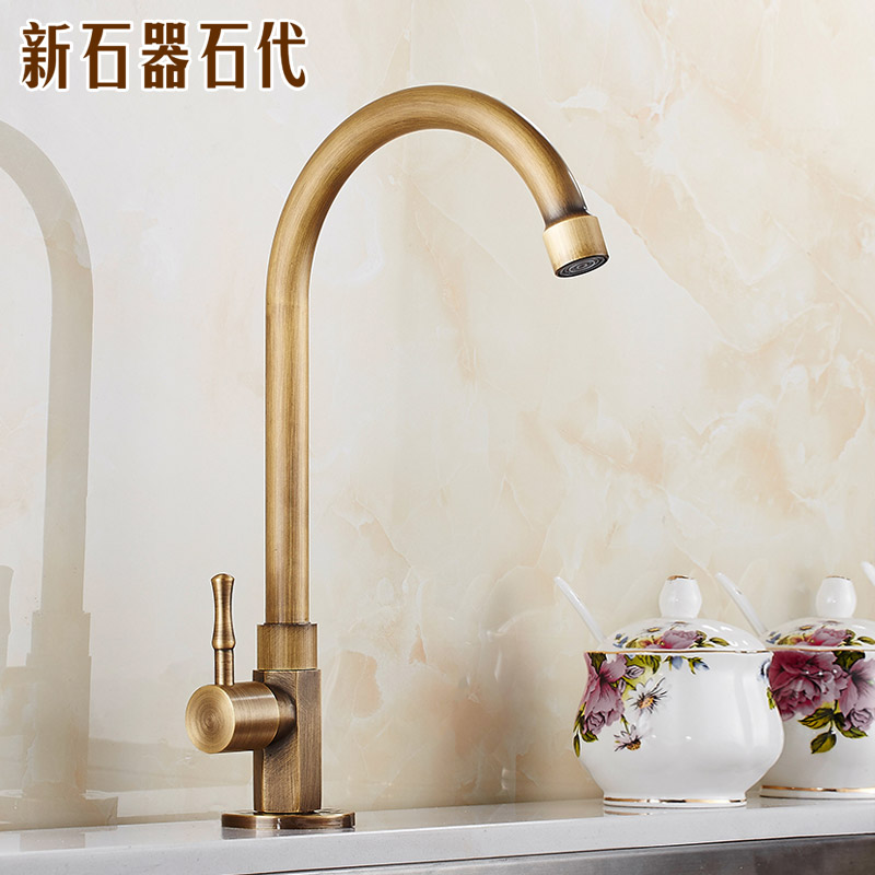 Kitchen Single Hole Single Cold Tap P8 High Throw Washing Vegetable Basin Sink Kitchen Basin Tap Net Lead Swivel Full Copper Tap