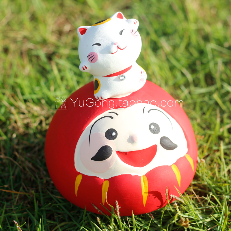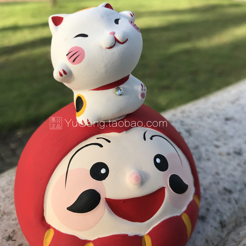 Japan's Seto-yaki hand-painted cute pottery Bodhidharma beckoning cat ceramic decoration lucky blessing prayer gift decoration
