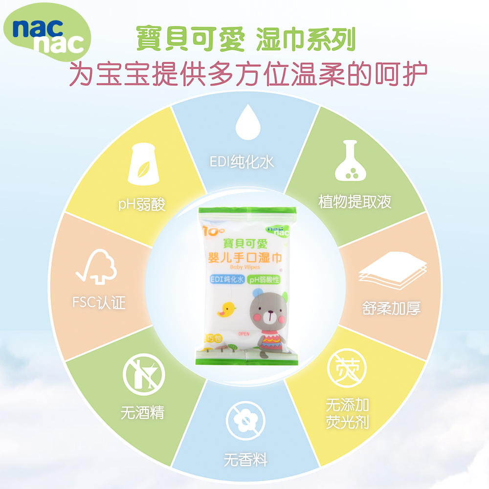 nacnac baby cute baby hand-mouth special wet towel baby light ride portable wet paper towels 10 pumps * 32 packs