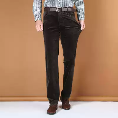 Antarctic cotton corduroy men's pants loose men's plus velvet winter pants Business casual pants middle-aged strip velvet pants