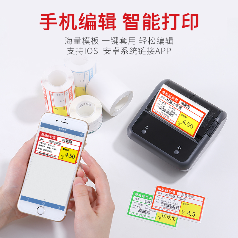 Collection purchase priority delivery B3s label machine (printing width 20-75mm) (Value package) B3s 5 rolls 70*38mm red supermarket label (value package
