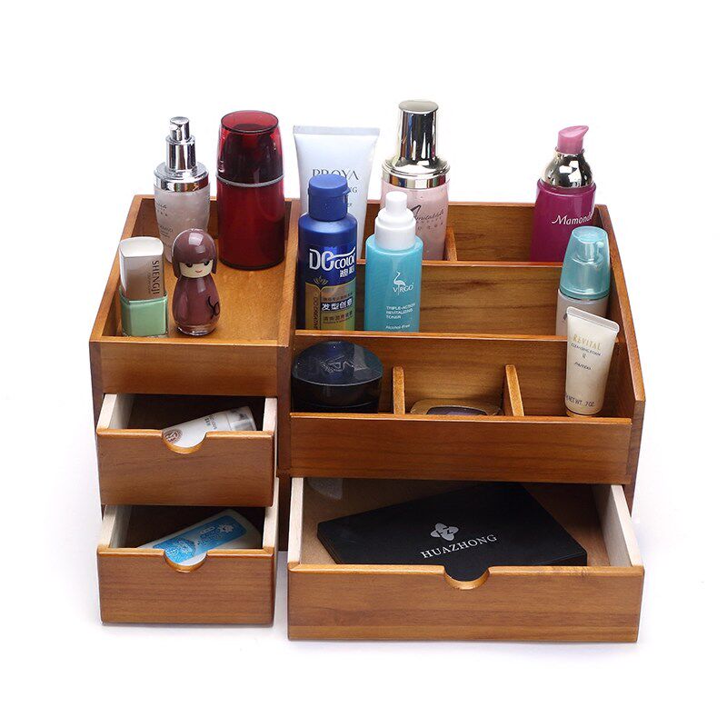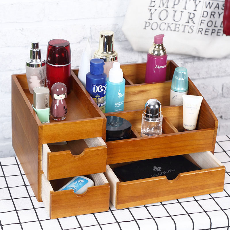 Coffee Color Rubber Wood Solid Wood Imitation Antique Color 2nd Floor Makeup Case Red Wood Color Rubber Wood Solid Wood Minimalist middle Number Monolayer Vertical antique color Three-layer Makeup Case Solid Wood Large single layer Makeup Case Minimalist