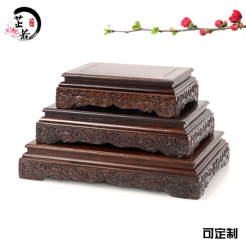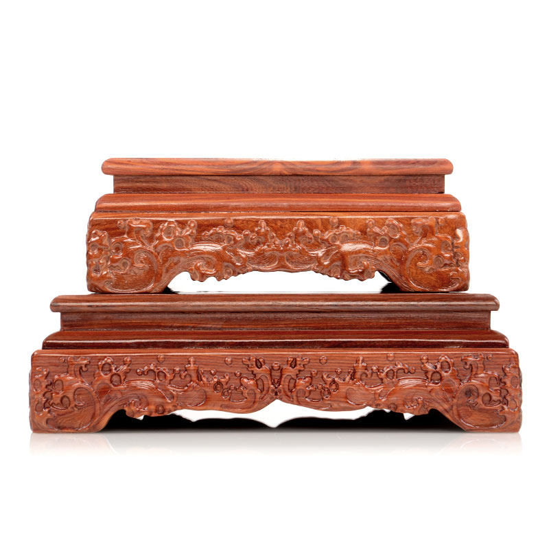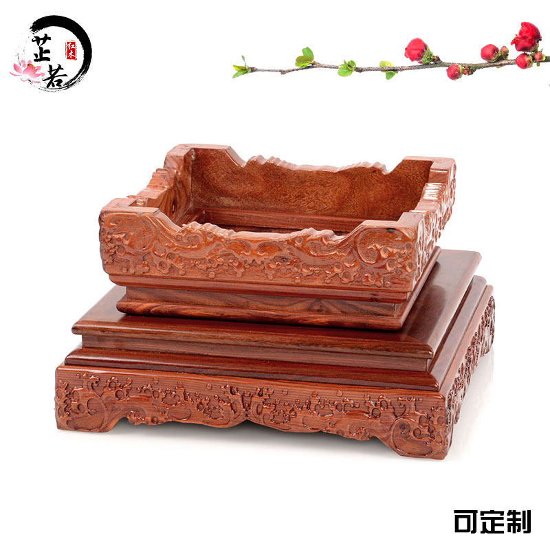 Handicraft decoration embossed flower bonsai fish tank carving wooden bracket odd stone purple sand teapot Buddha statue solid wood base