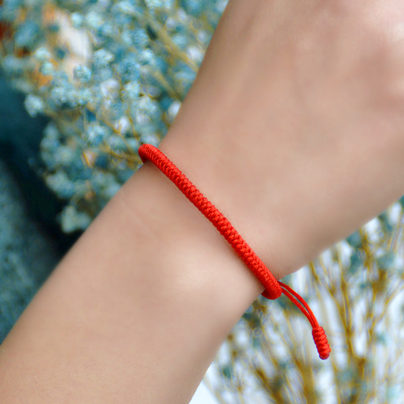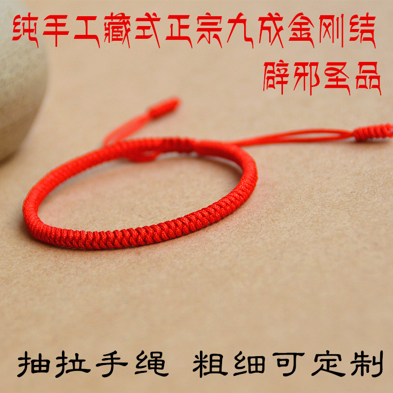 Hand-made Tibetan nine-by-one diamond knot body protection evil hand rope Life annihilation Tai Sui red rope hand chain pull adjustable
