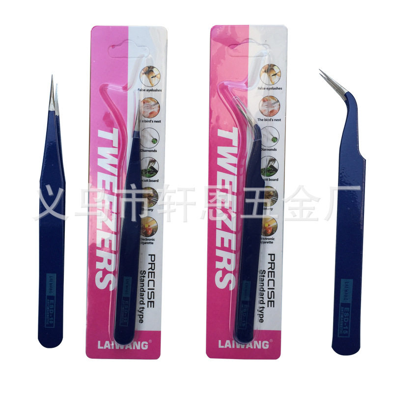 Twezers stainless steel fake eyelashes black white green pink ESD - 10 straight head electron clamp can be determined LOGO color