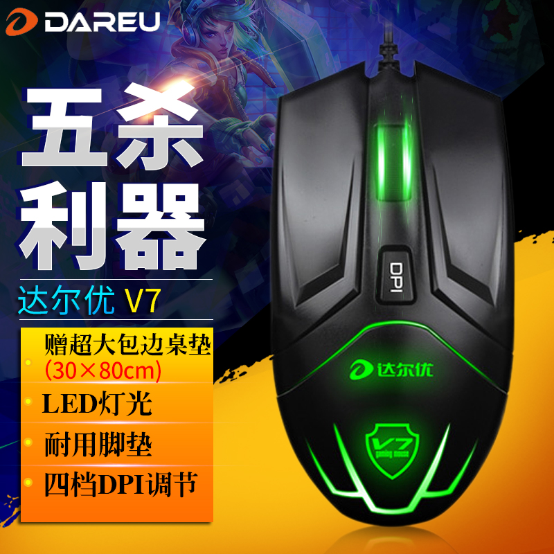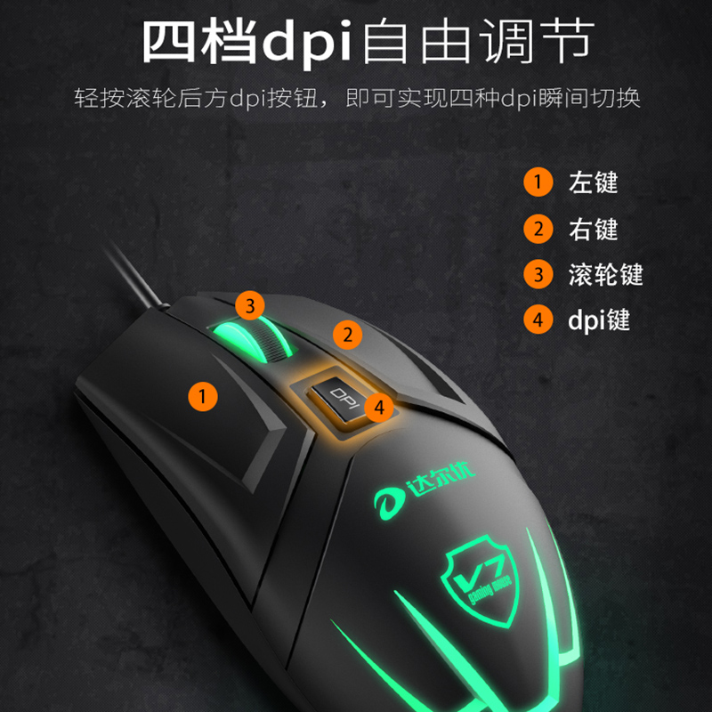 Dallu V7 Luminous cable game Sliding Rat shepherd's desktop PC Home Office Professional Internet café Café CF competitive Aggravated USB Optoelectronic Slip Rat Jedi Desktop Home LOL