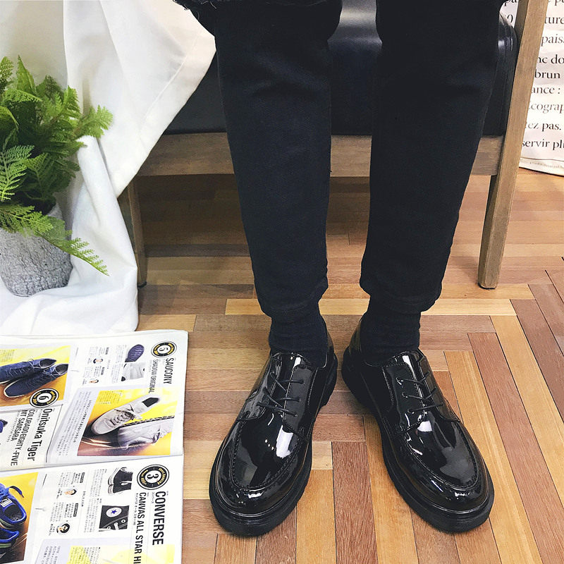Small leather shoes men's Korean version of the tide spring Harajuku bright leather shoes students black Hong Kong style casual round head British Martin shoes