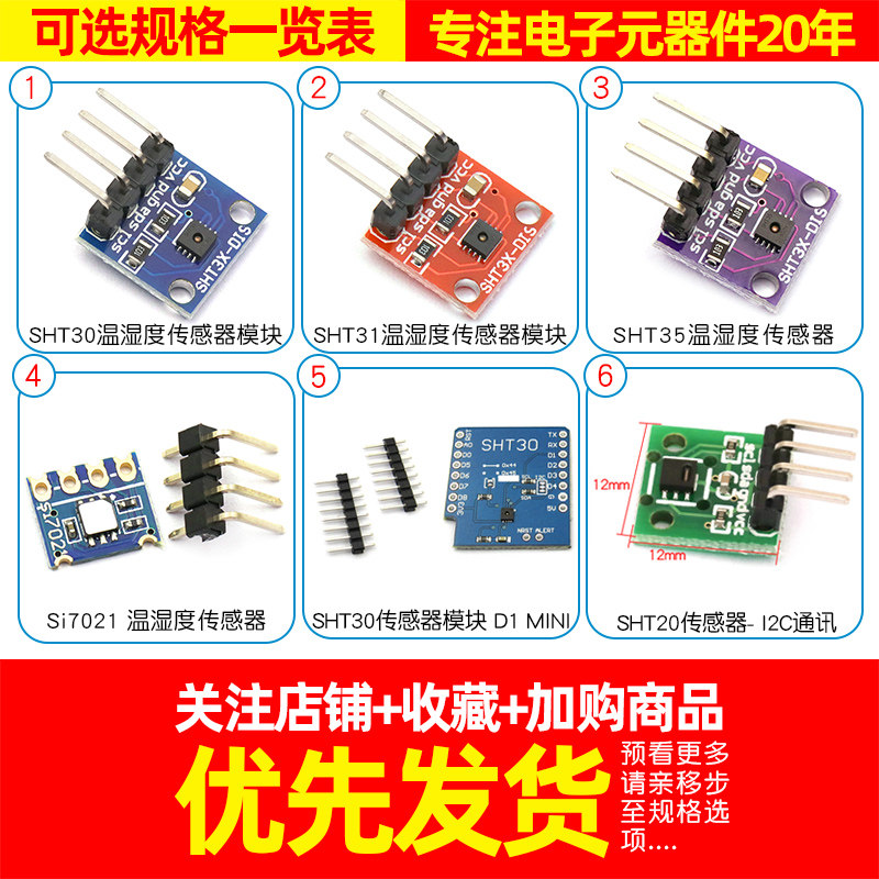 SHT30 temperature and humidity sensor module SHT31 temperature and humidity sensor module SHT35 temperature and humidity sensor module Si7021 temperature and humidity sensor high precision
