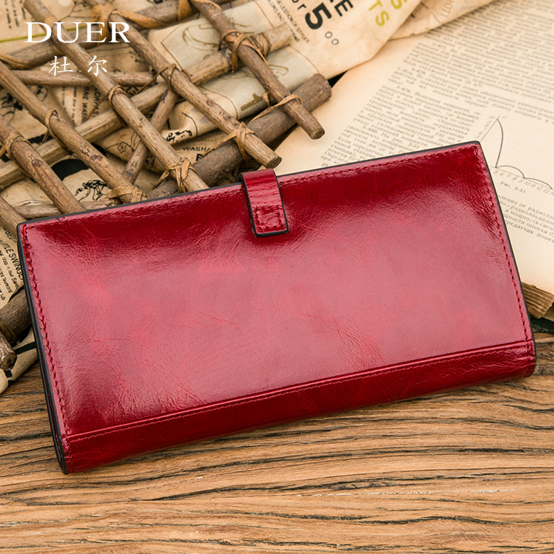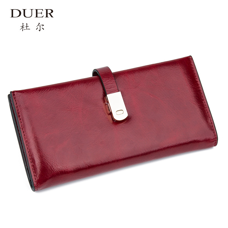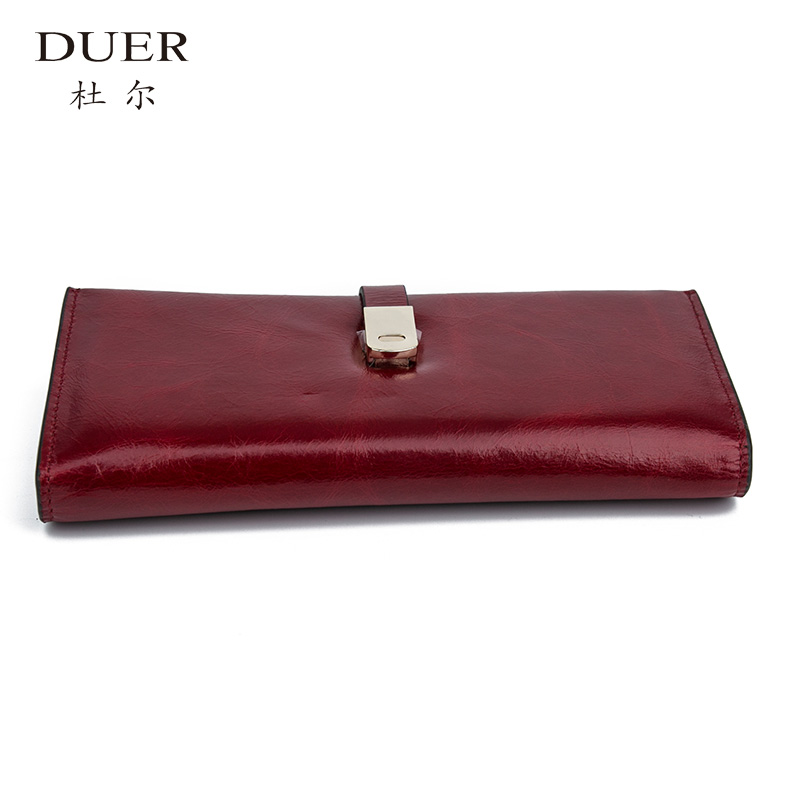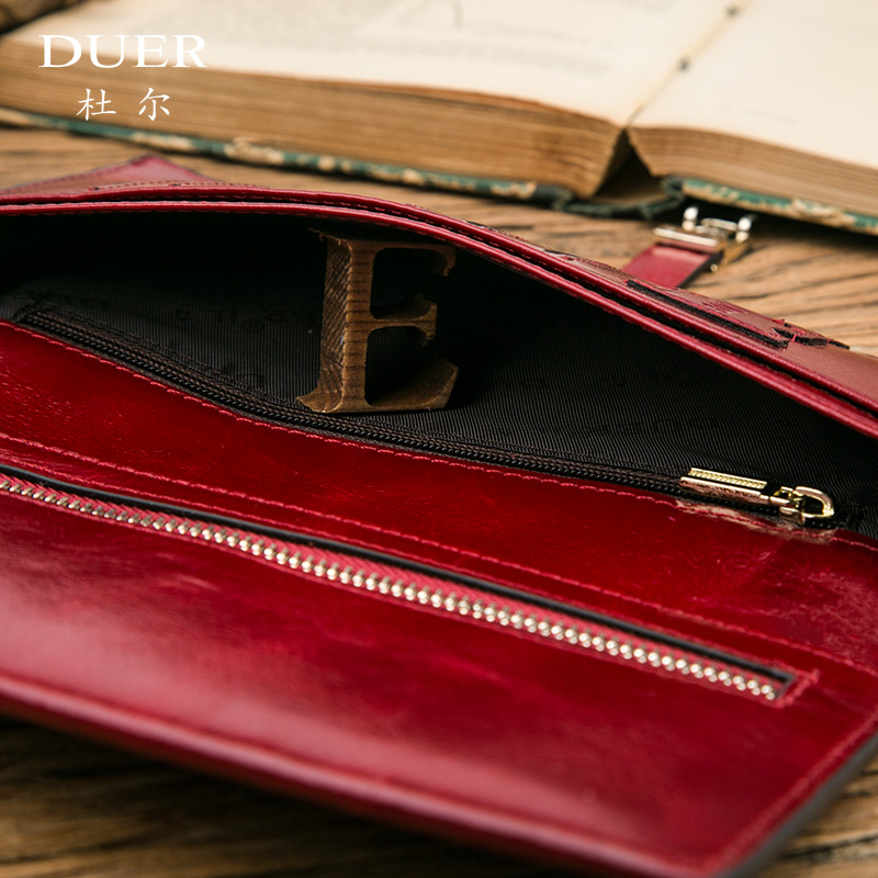 DUER European and American wallet female style long version of cow leather thin large capacity money clip genuine leather leather leather clip minimalist OL wind hand holding bag