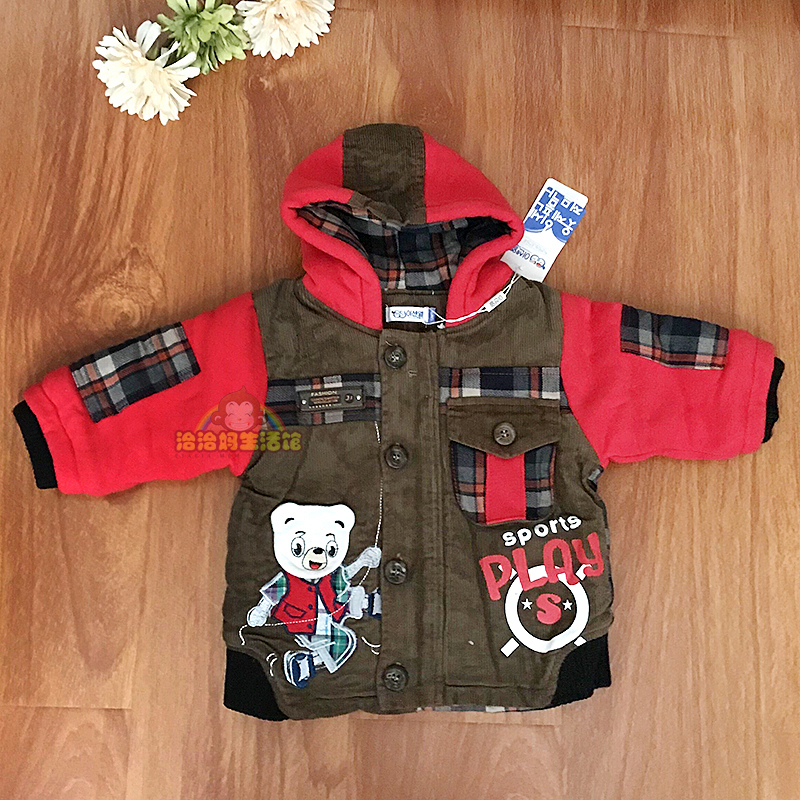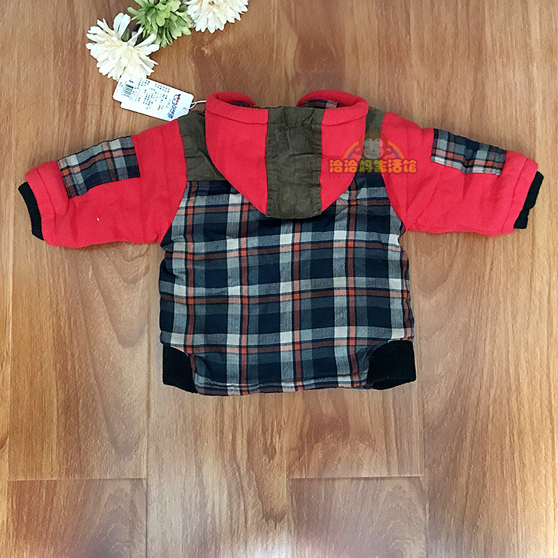 Counter boys and girls baby wicker plaid plus velvet hooded jacket jeans suit winter outdoor clothing