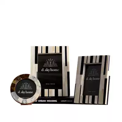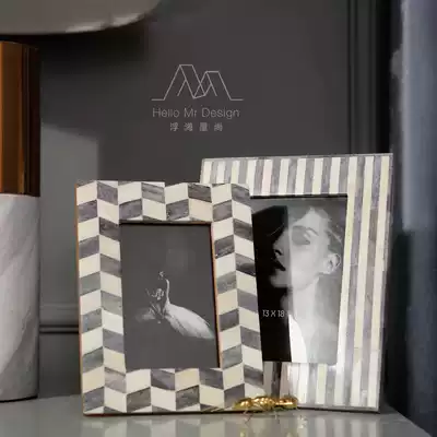 India imported cow bone photo frame 6 inch 7 inch geometric stripes retro decorative photo frame image frame modern desktop decoration design