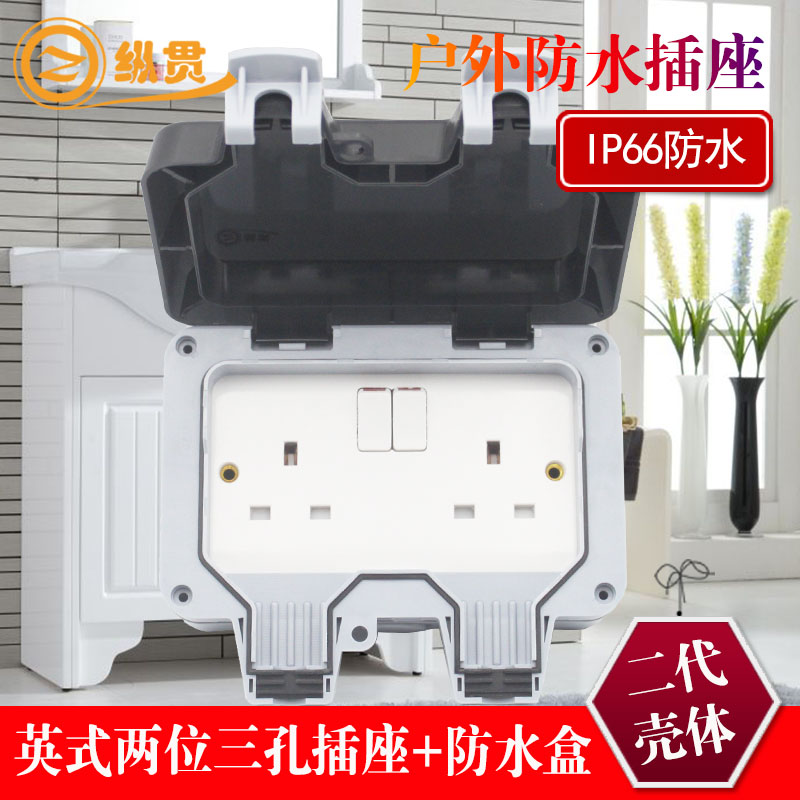 BG's Inform Ming-style Outdoor Waterproof Socket 13A Hong Kong Special two 3-hole splash-proof box Bathrooms anti-splash and dust-proof