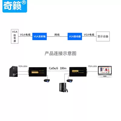 VGA to network interface Active signal extender Network cable transmission high-definition VGA video signal to RJ45 amplifier