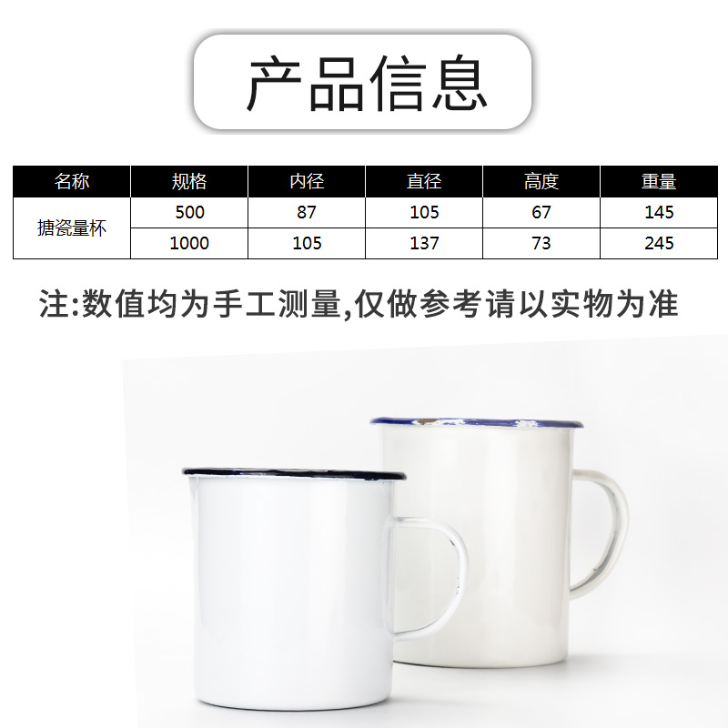 Enamel measuring cup 500ml scale with handle water cup disinfection enamel ointment cylinder ointment jar with lid cotton cylinder